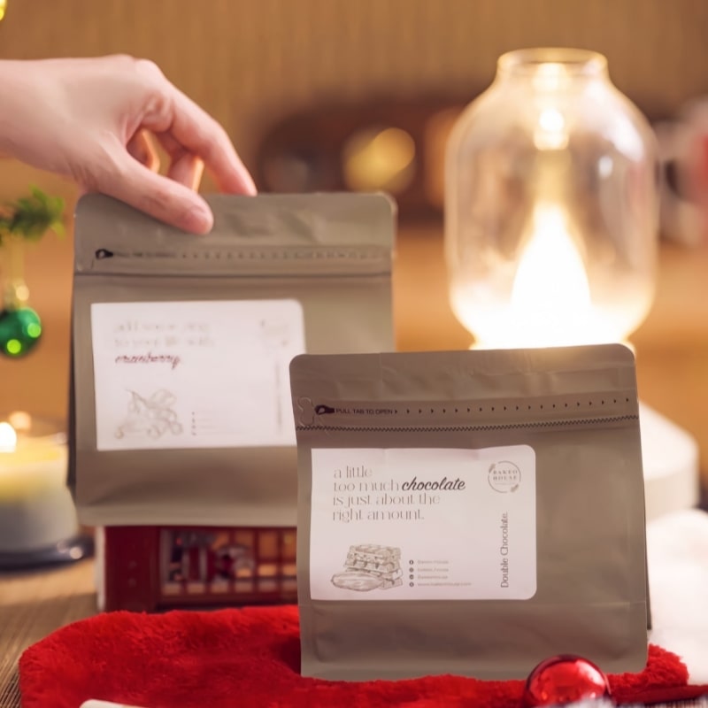 Ingredients: Cookies bake with Butter, Brown Sugar, Castor Sugar, Flour, Cocoa Powder, Chocolate Chip, Almond